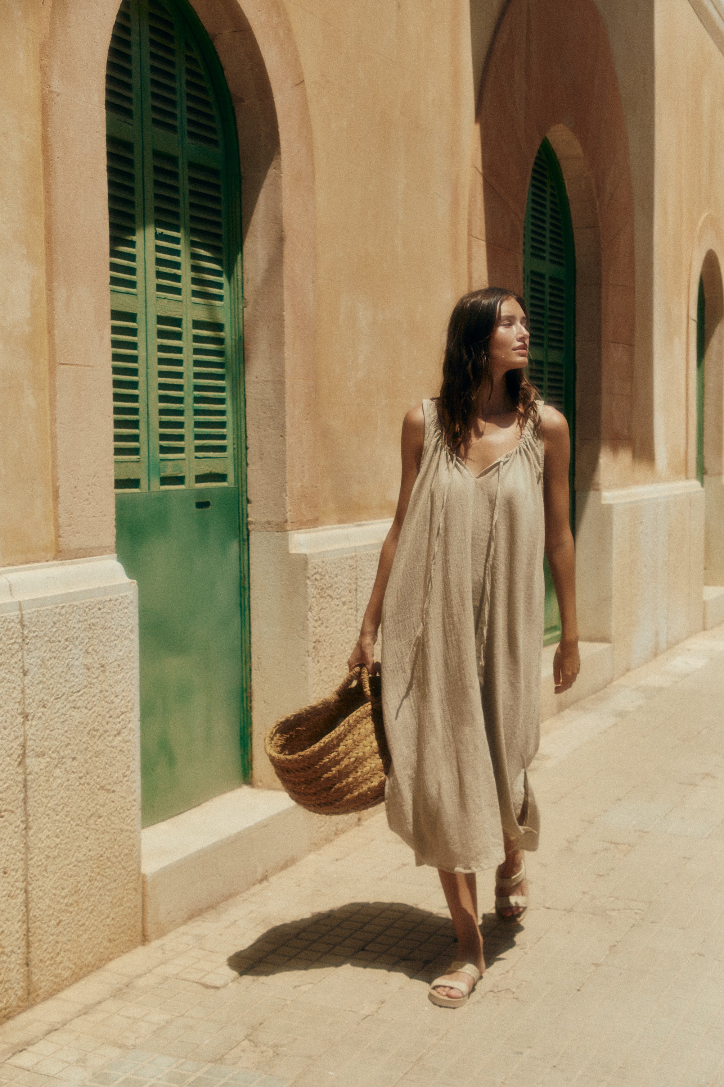 The Bridget Midi Dress is back in a sweet new fabrication and remains our favorite go-to staple. With its effortless, relaxed fit, the dress drapes beautifully off the body and features an adjustable drawstring to customize the fit. The Bridget is maternity and breastfeeding frieldly, designed to be worn loosely making it the perfect go-to piece that can be easily dressed up or simply thrown on for those warm beach days.