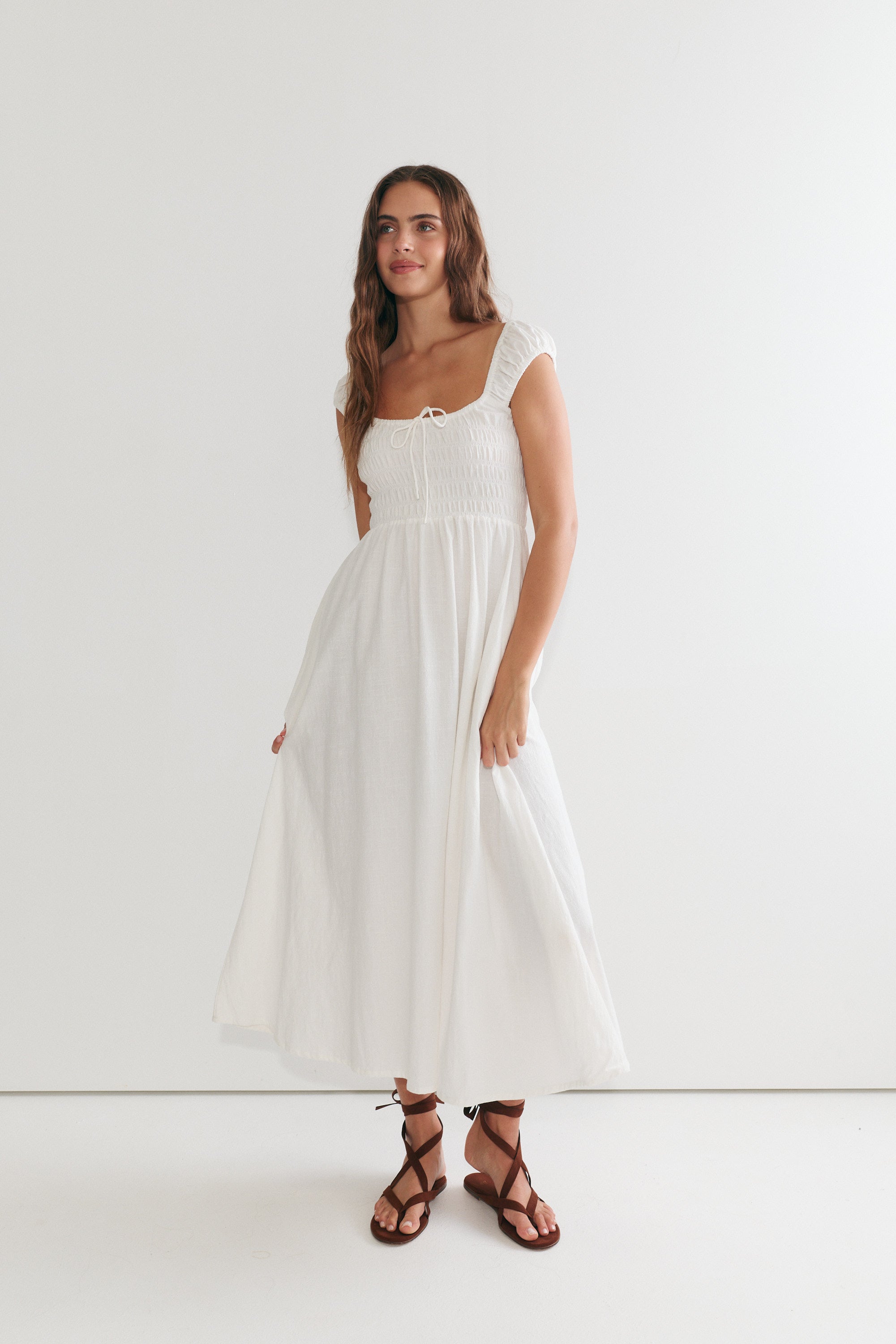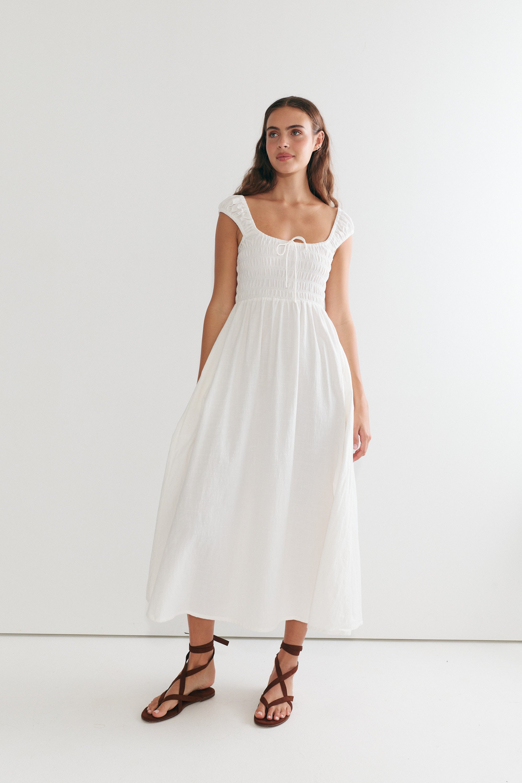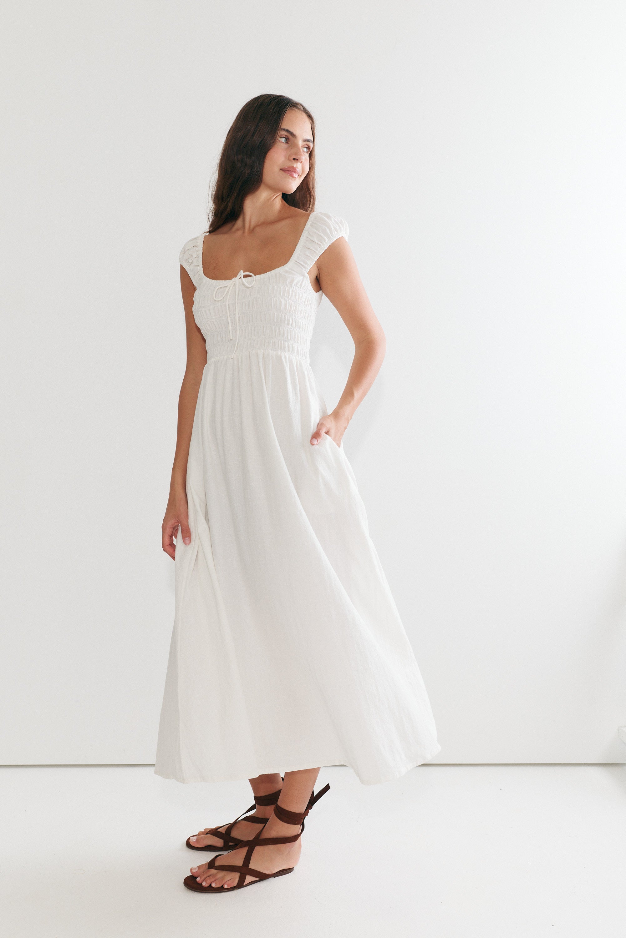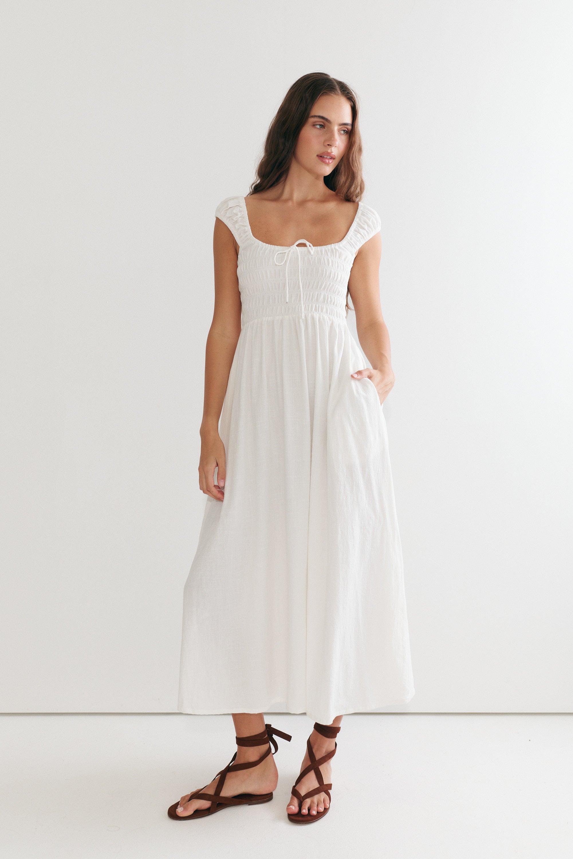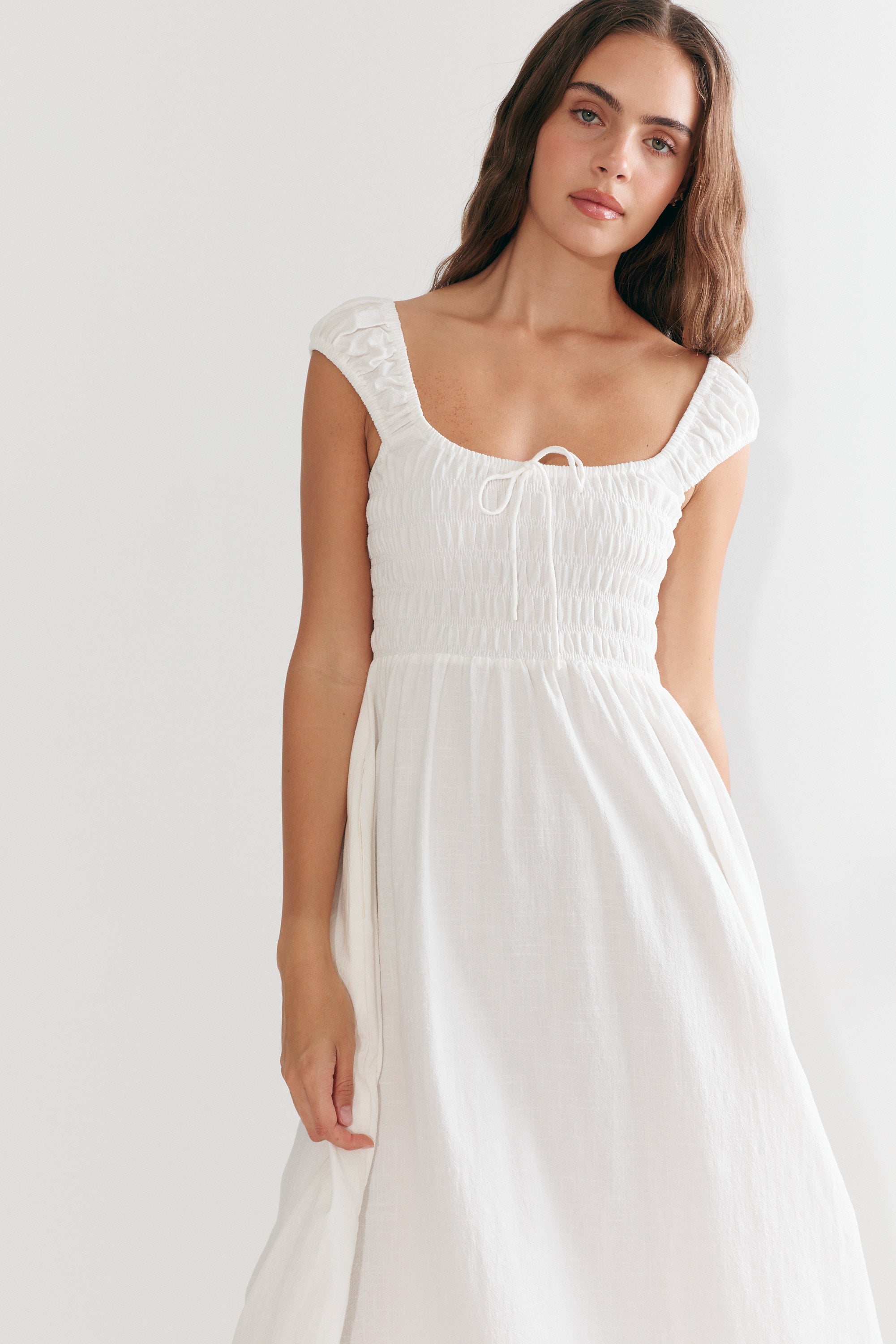 Our newest dress is here, with flattering shirring at the bust and a beautiful flowing skirt, the Remy Maxi is effortlessly soft and feminine. The sleeves can be worn on or off the shoulders, and we love how this delicate, flowing design has become an instant favourite!