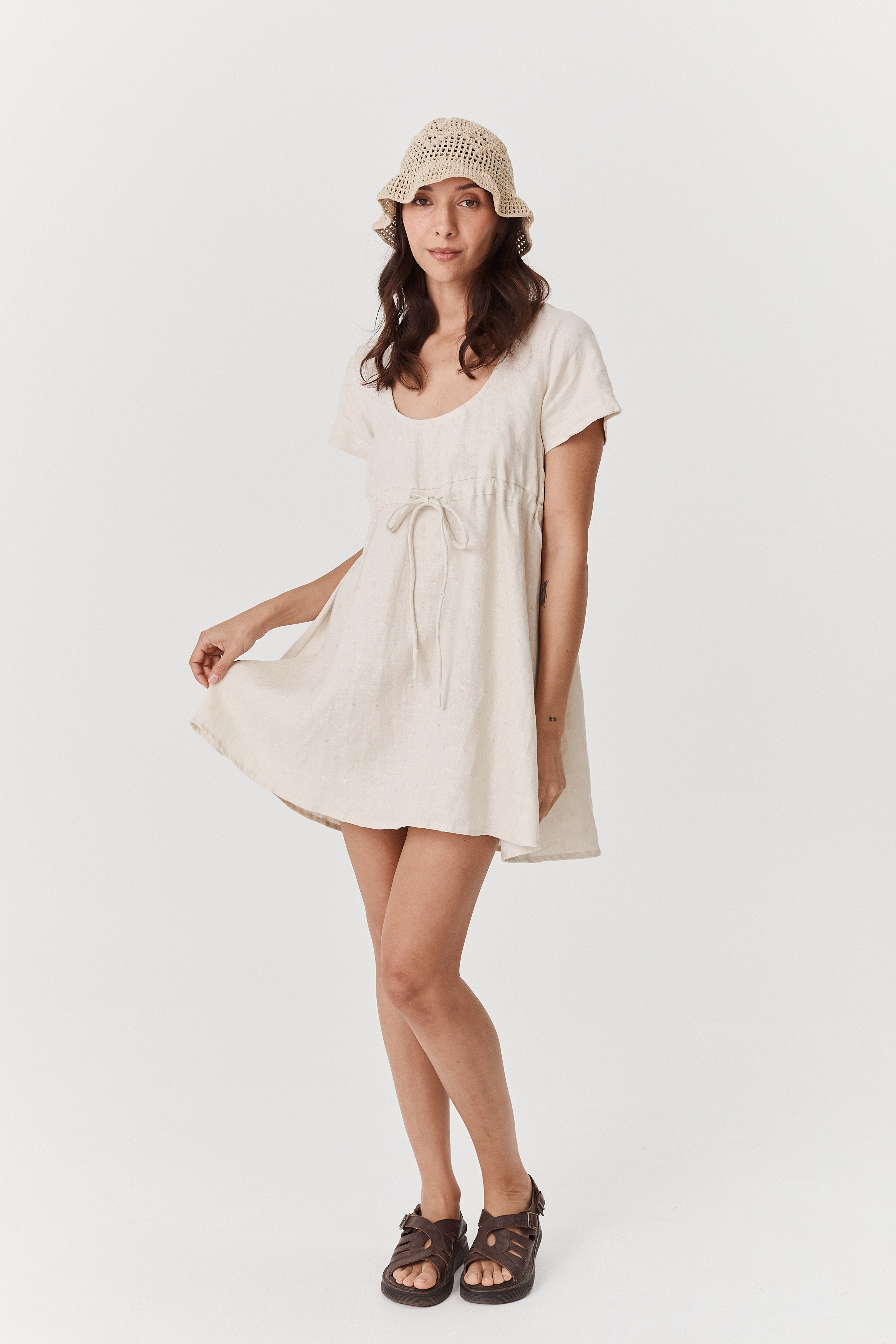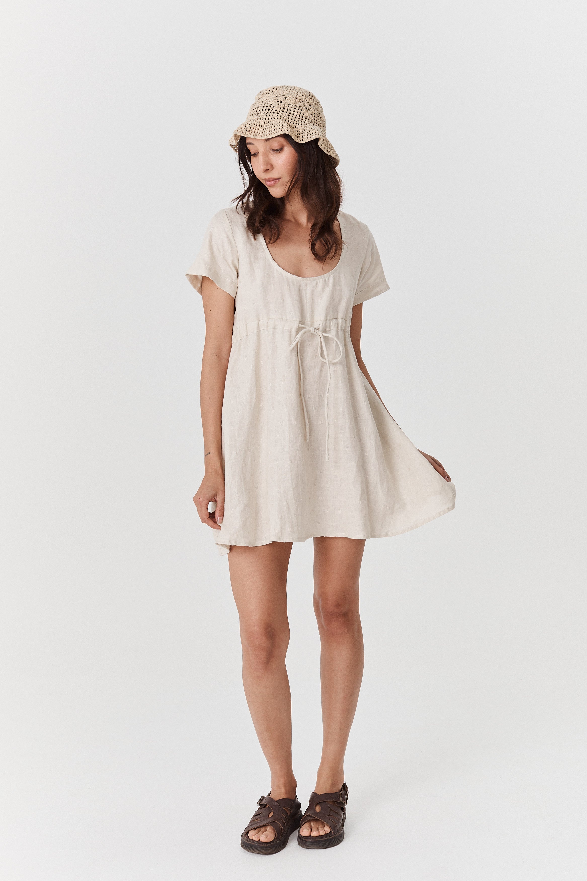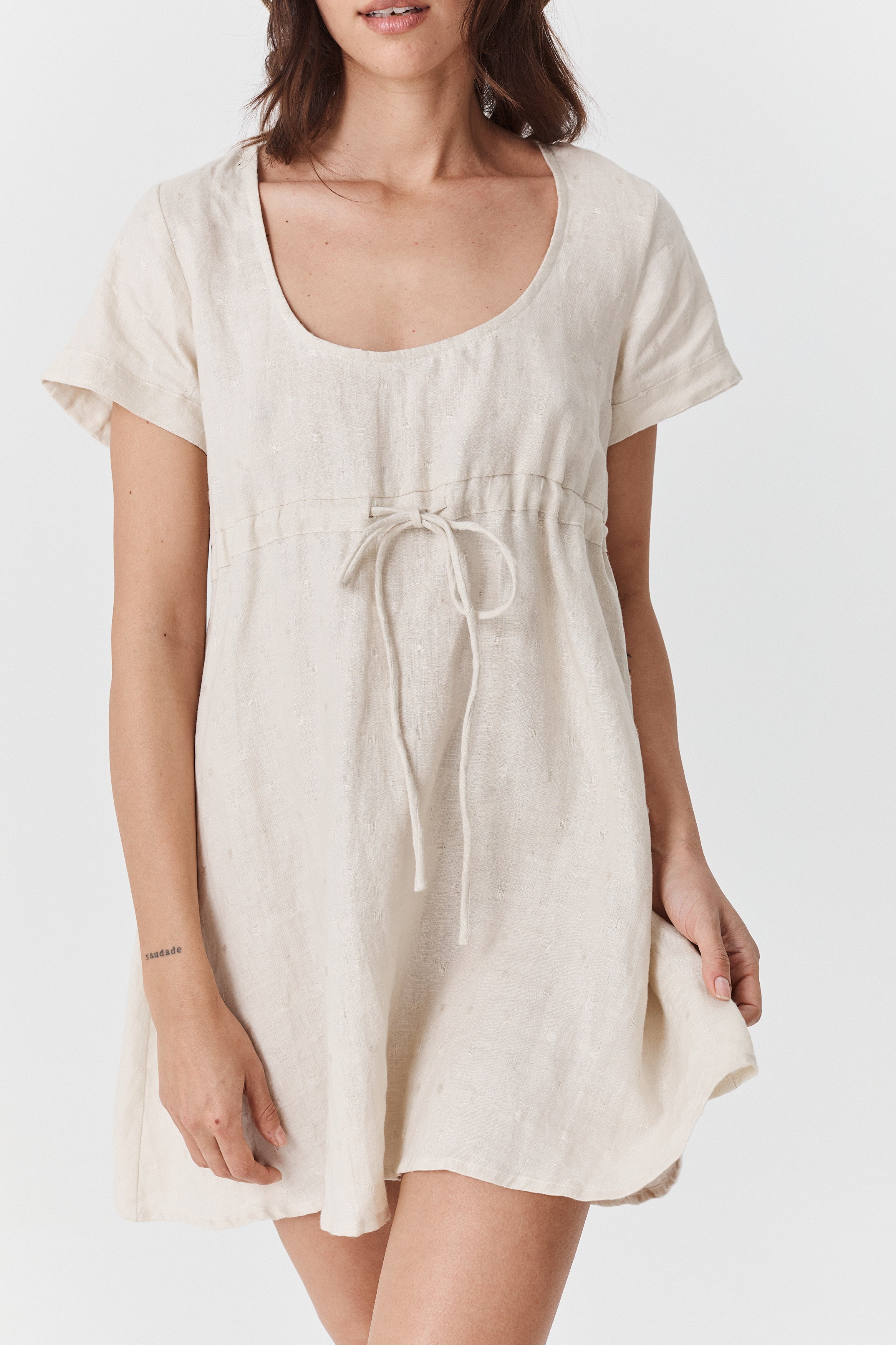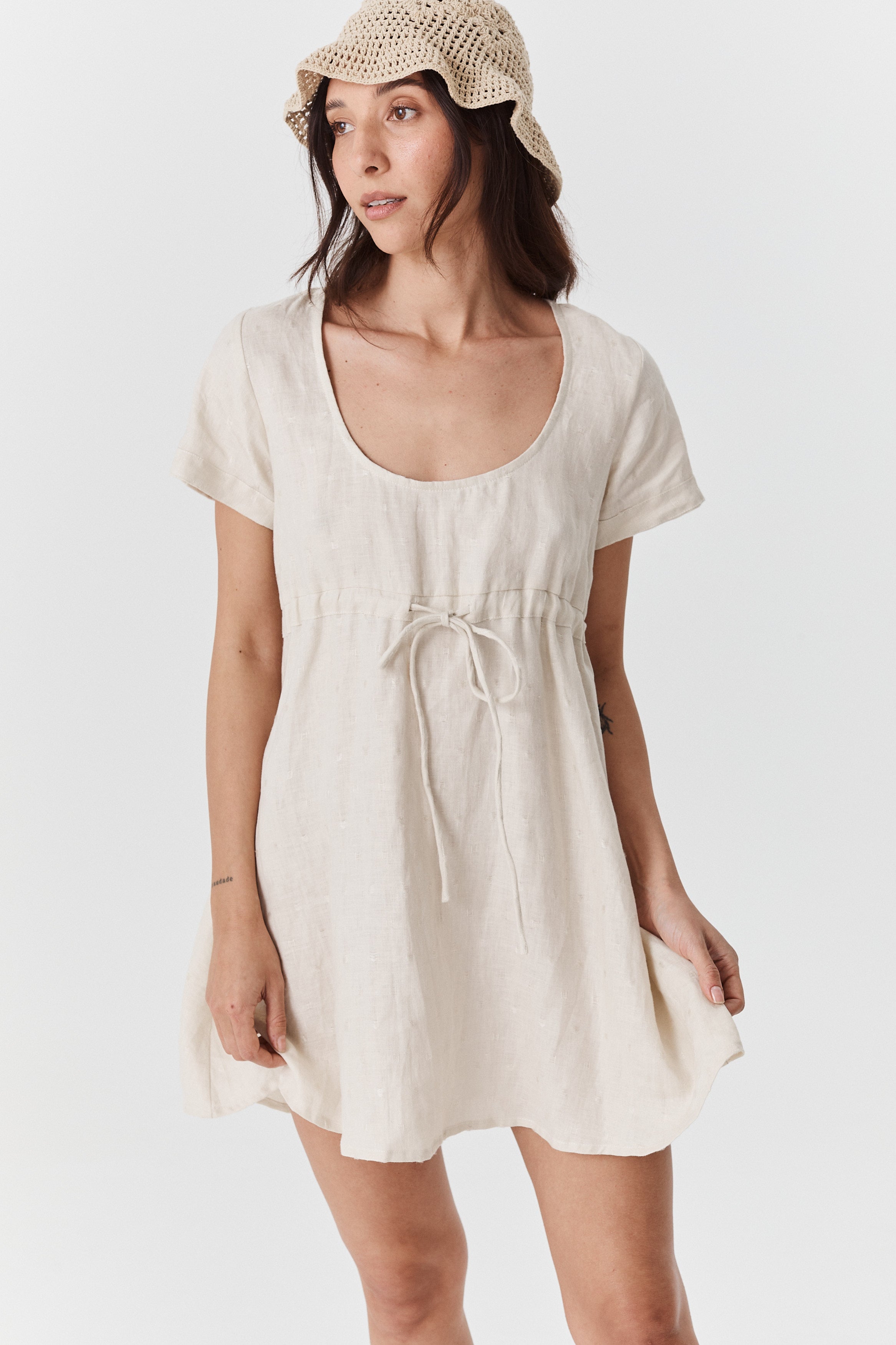 The Sienna Mini is the perfect light weight linen mini. Designed to be worn effortlessly as is, paired with your favourite sandals for summer. Featuring an adjustable drawstring under the bust to create your desired silhuoette, and free flowing from the bust down the Sienna is sure to be a favourite coming into the warmer months.