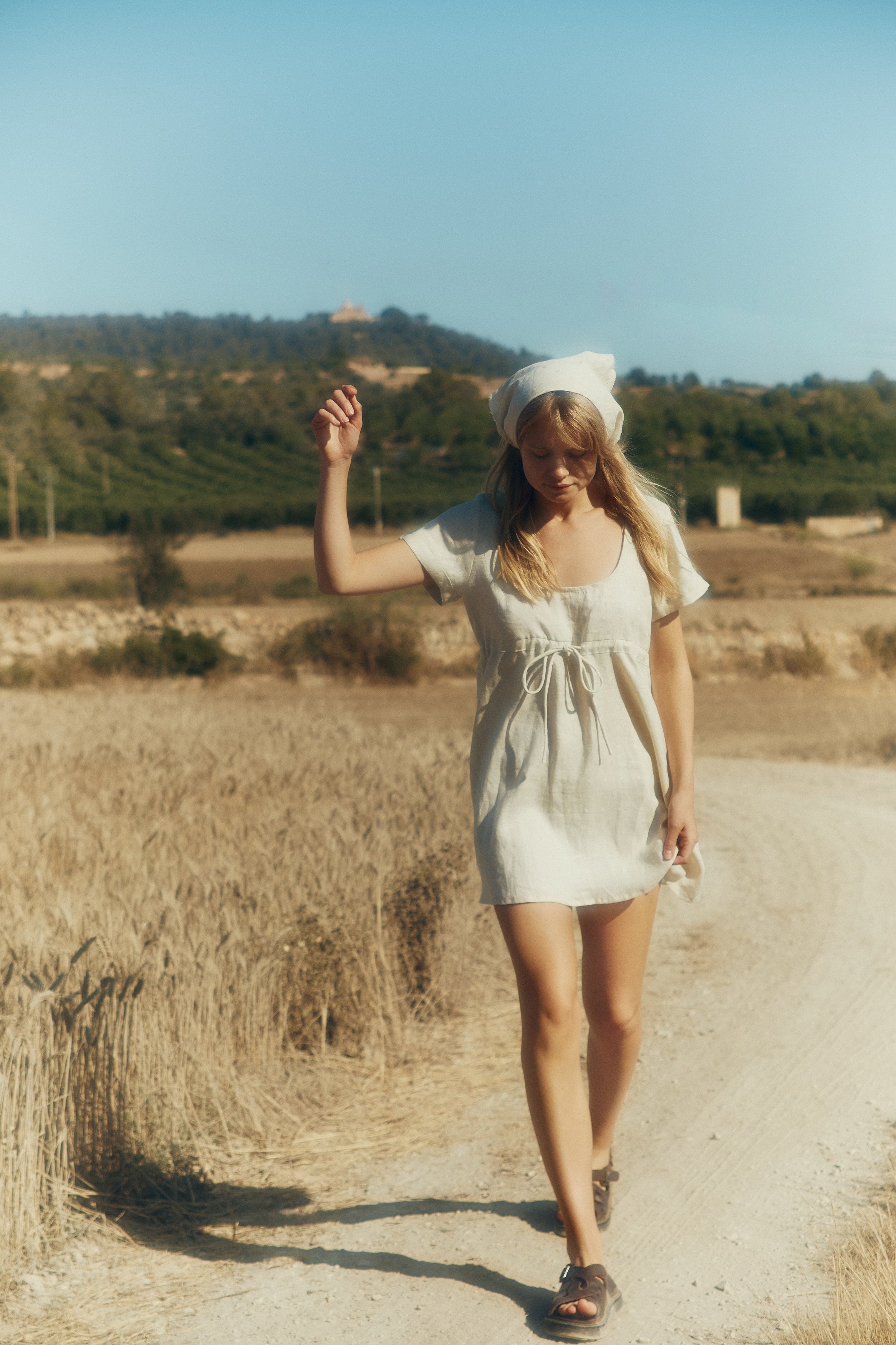 Responsibly made to love for years to come, the Sienna Mini in distressed linen are made from a buttery soft linen fabrication. Linen is a light yet durable fabrication that softens with each wash, the more worn, the softer each piece becomes. Linen is  high in antibacterial properities making it resistant to UV light, mold, and mildew.