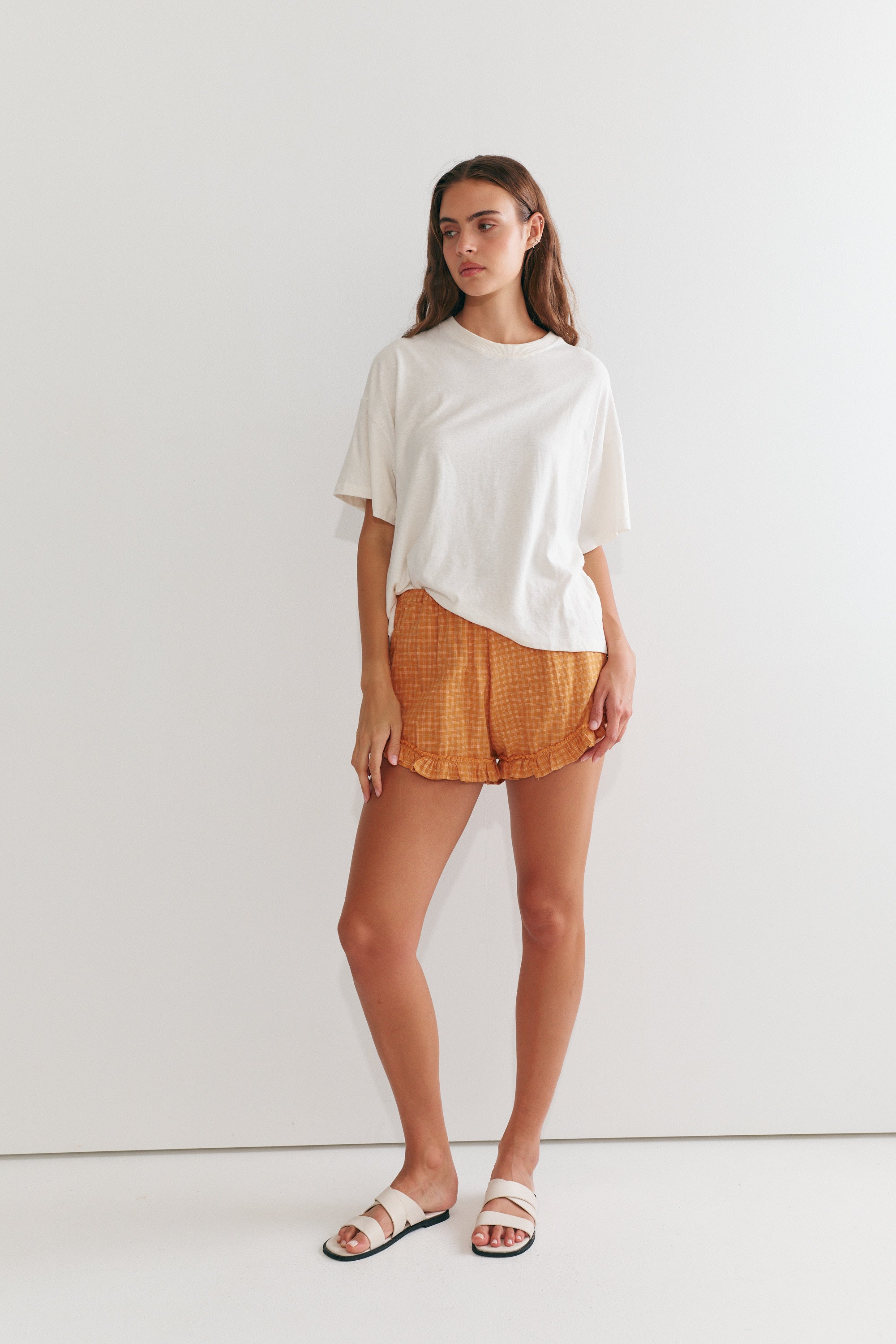 The Jeanne Shorts feature an elasticated waist band, functional pockets and a sweet feminine frill detailing. Perfecly for pairing with the Jeanne Shirt or the your favourite simple tee or singlet.
