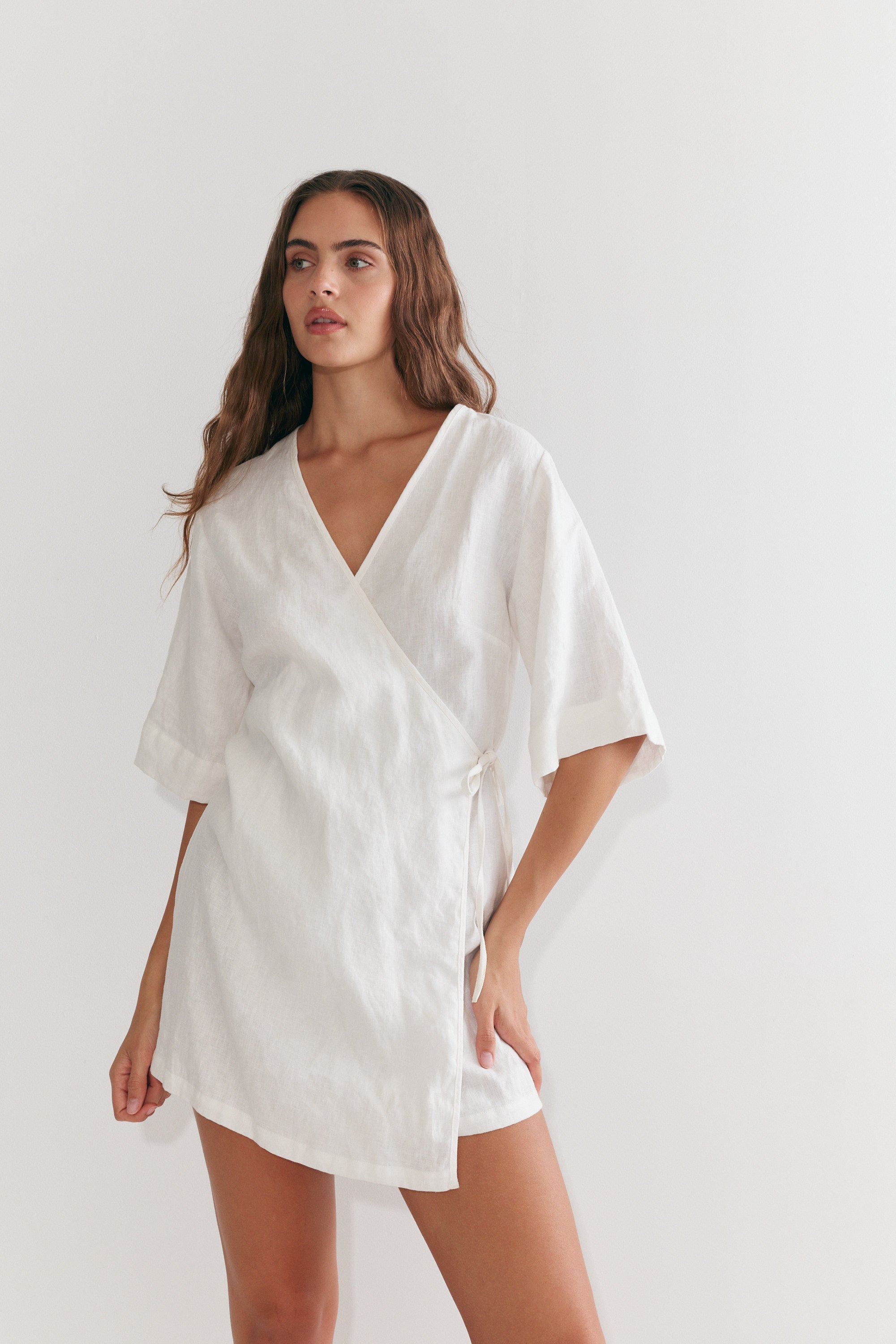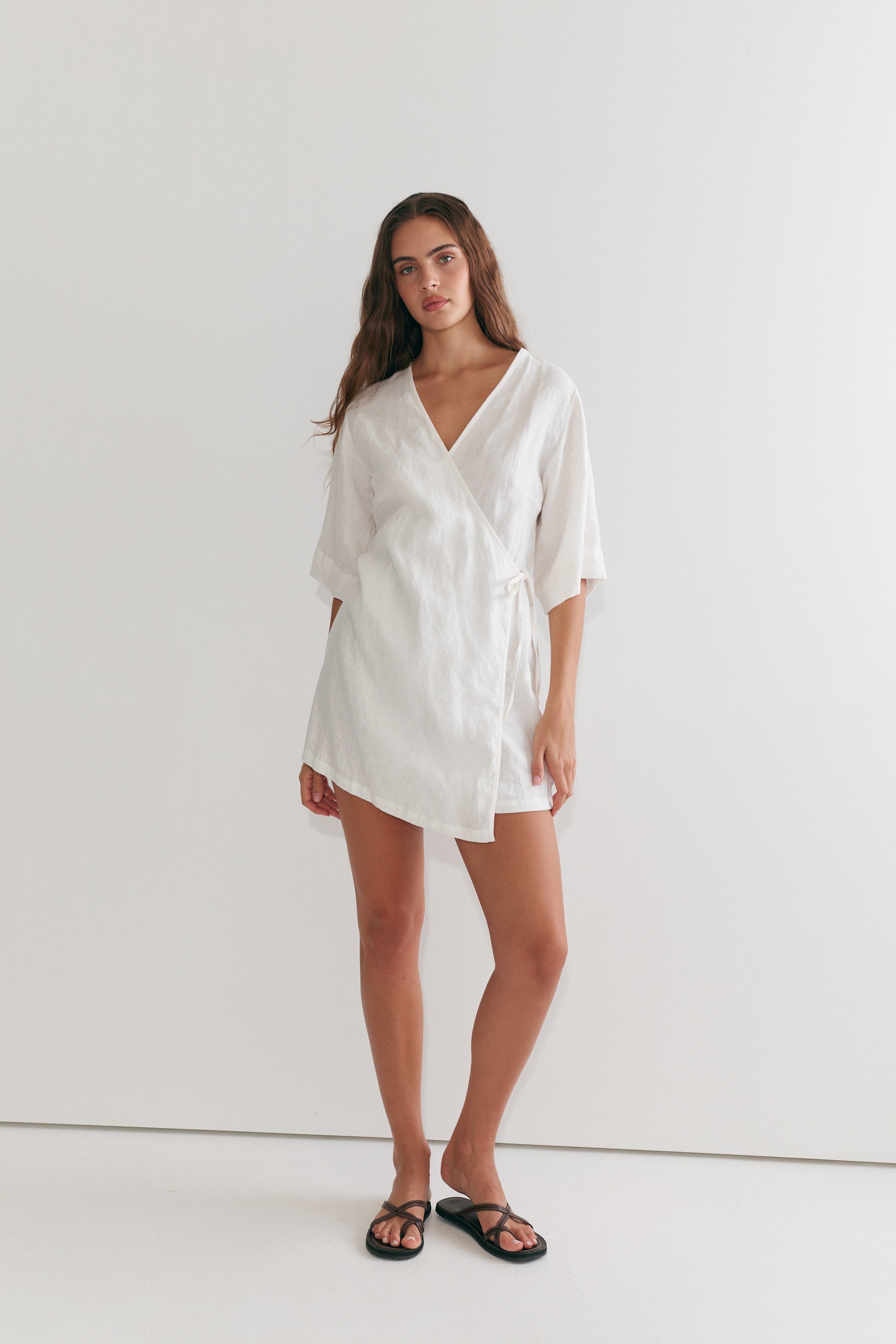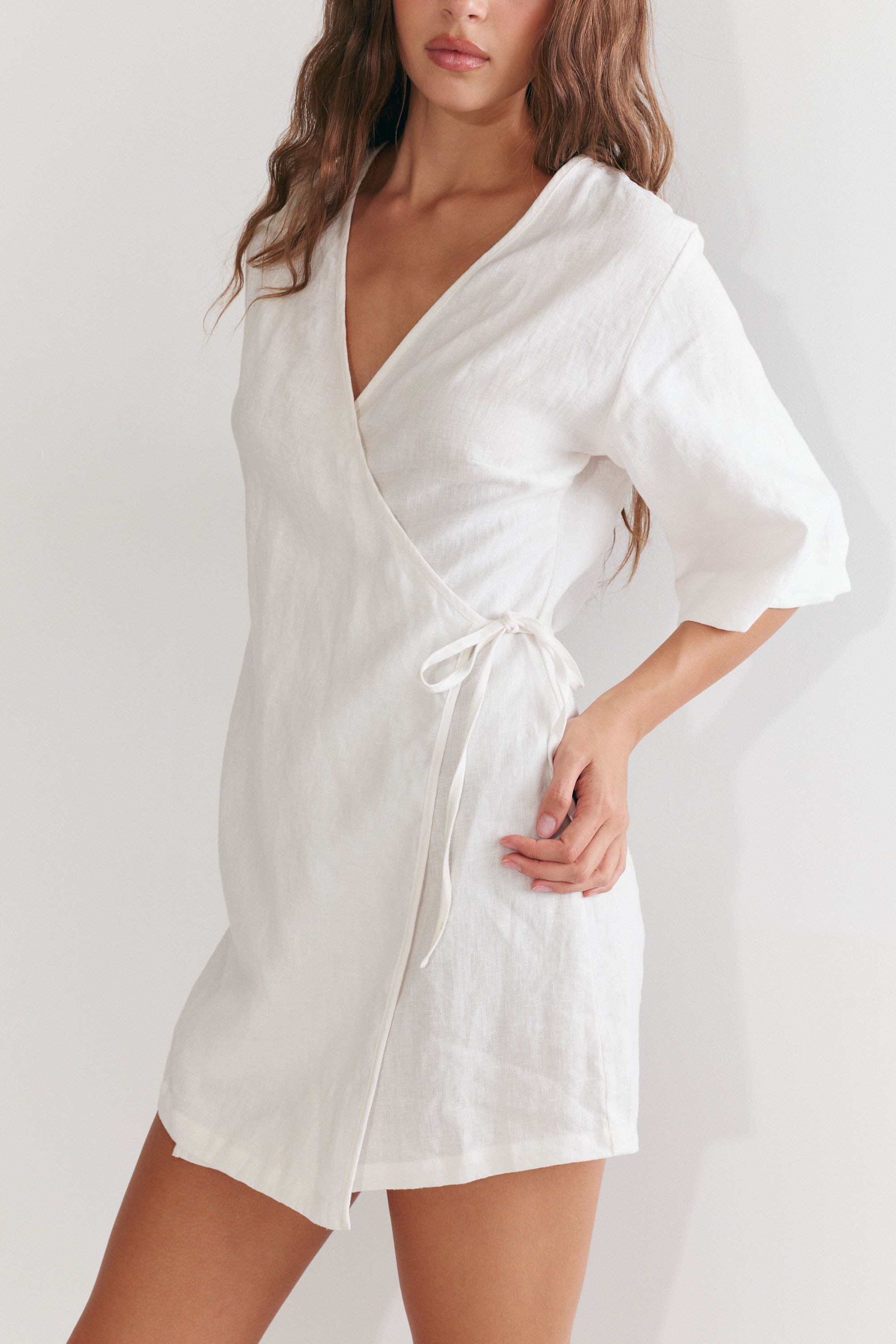 Our new mini wrap dress is designed for effortless everyday style. Featuring sleeves with a soft drape and a flattering wrap, it can be tied to your preferred fit, enhancing your shape while keeping a light, airy feel. Feminine and comfortable, this dress moves beautifully and is made to be worn again and again.
