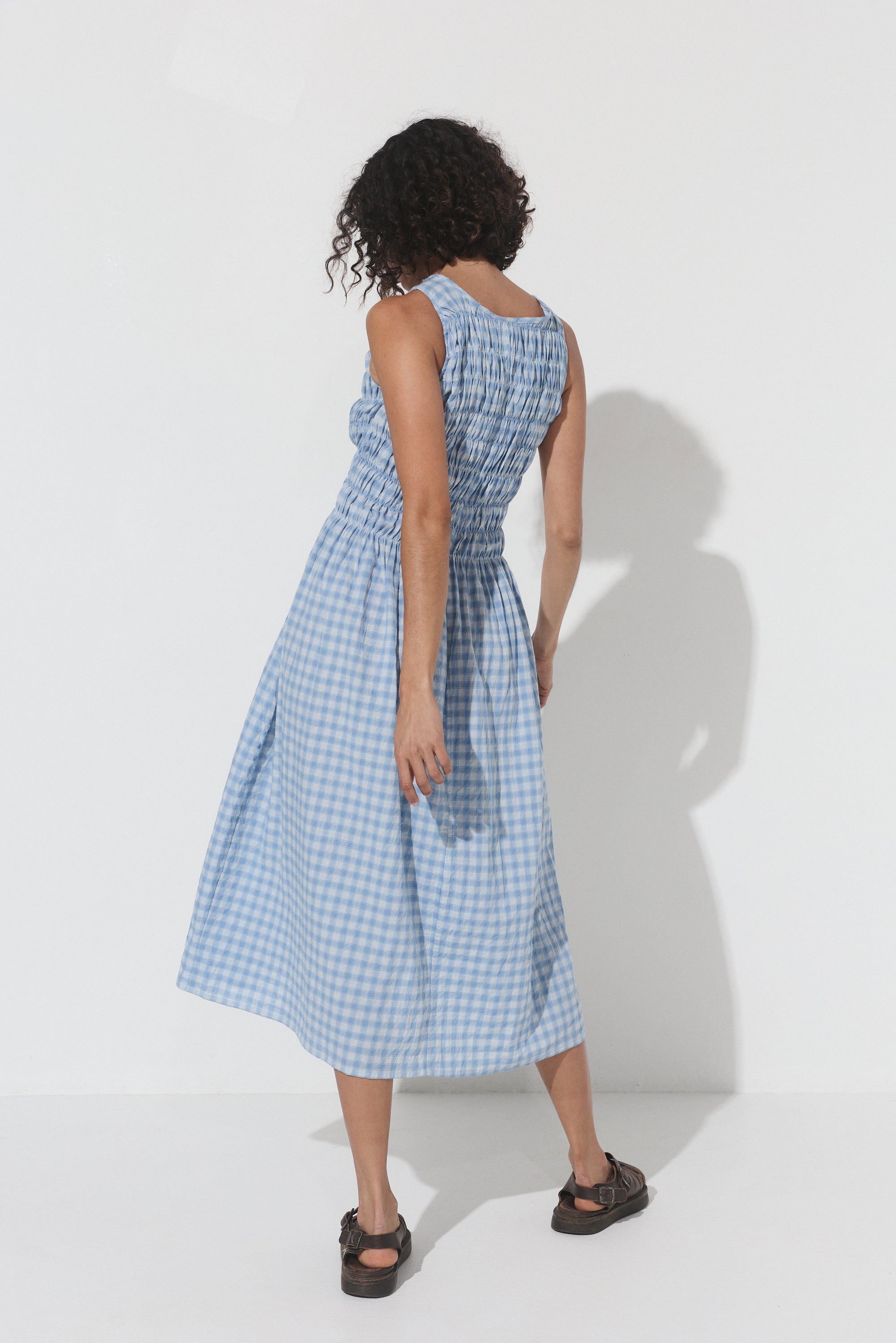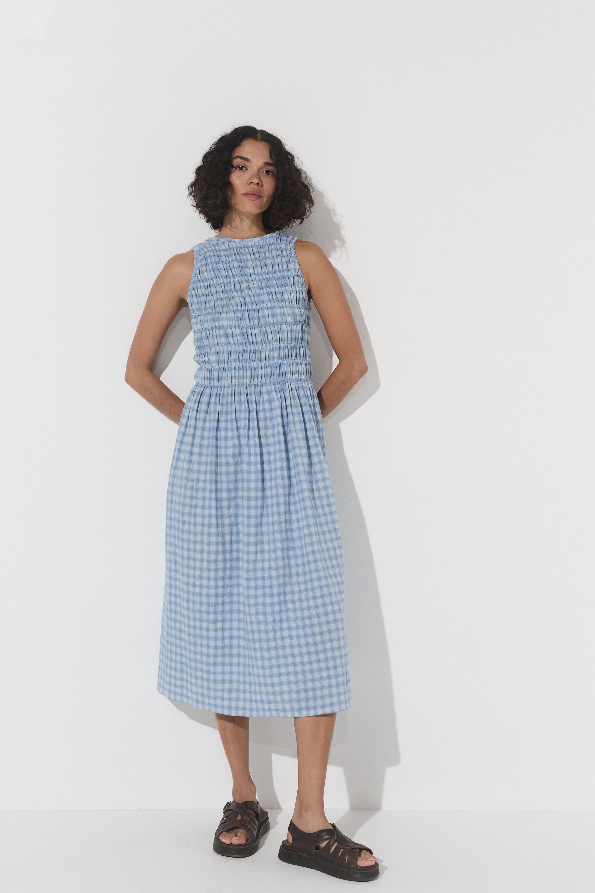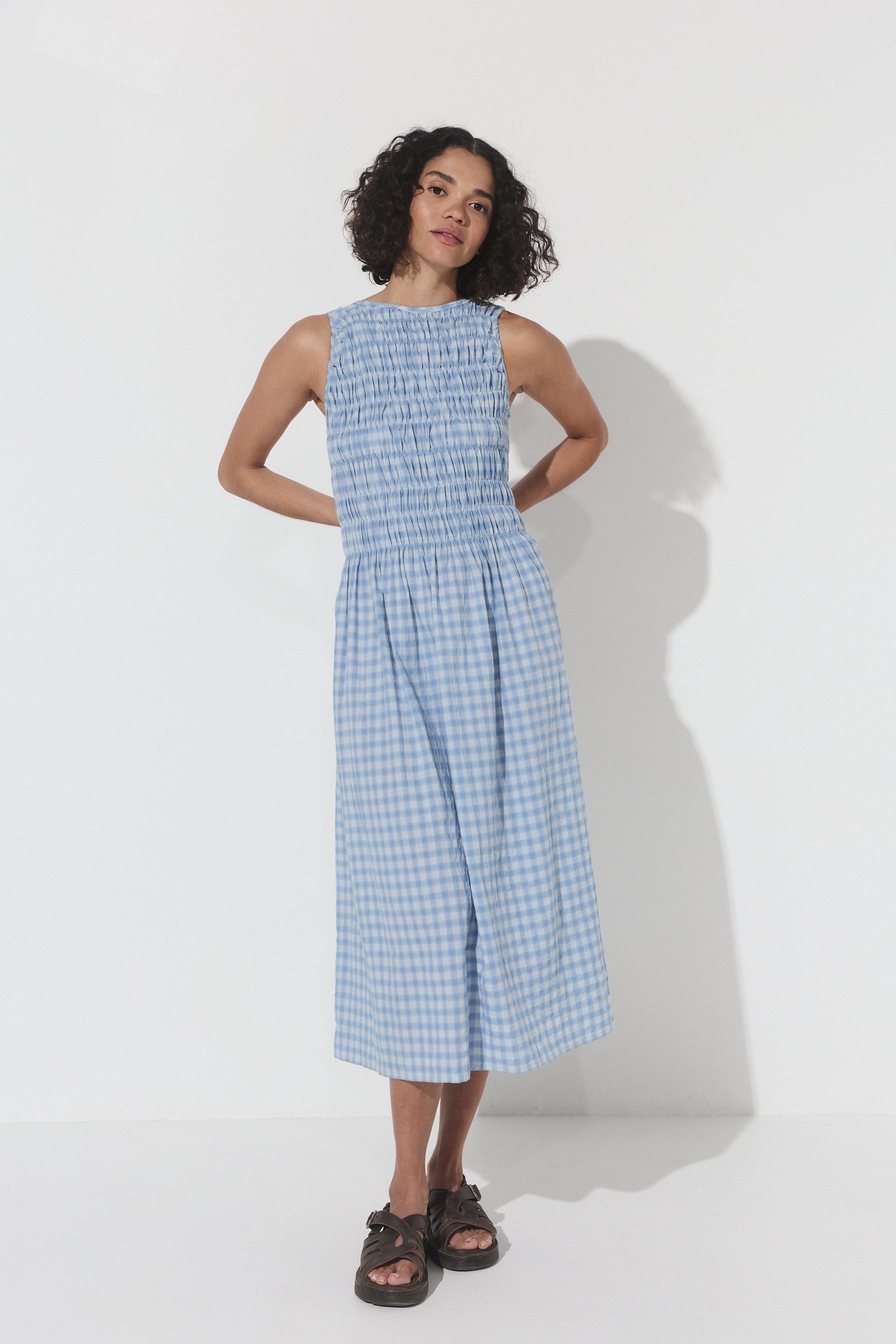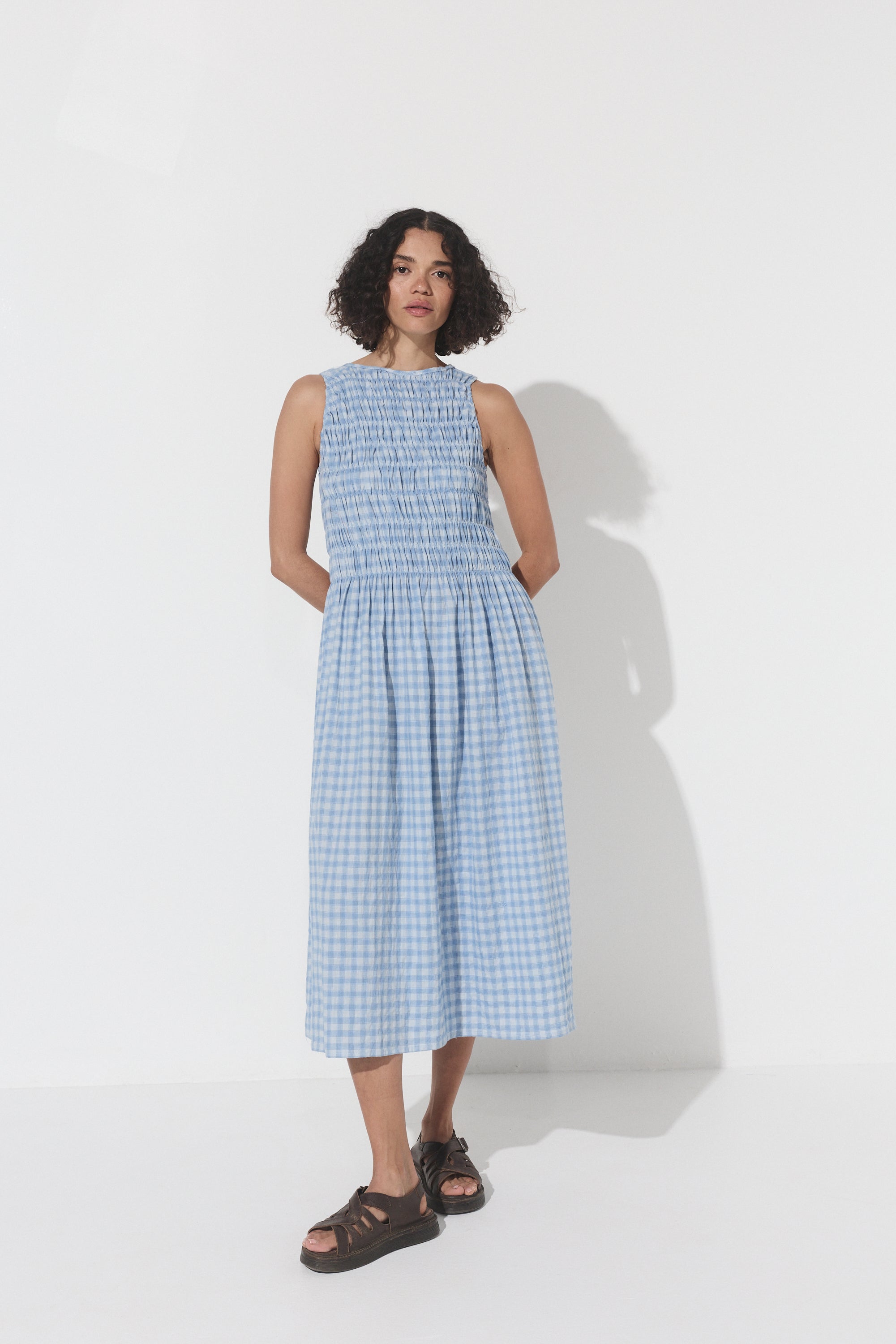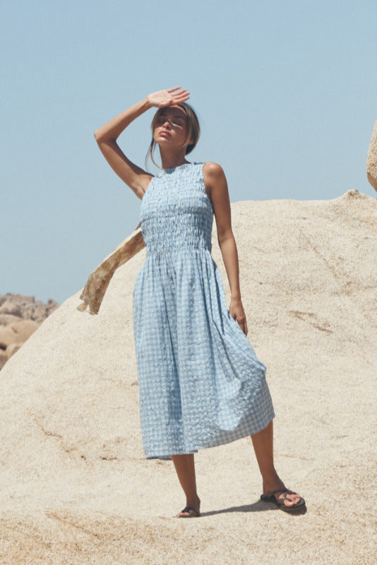 The Capucine Midi offers a flattering silhouette, featuring elastication from the shoulders to the waist line, providing ample room and comfort for all bust sizes. Falling with ease from the waist down, it flows effortlessly, creating a relaxed yet polished look. Thoughtfully designed with functional pockets, this dress is perfect for days when you want style and ease combined.