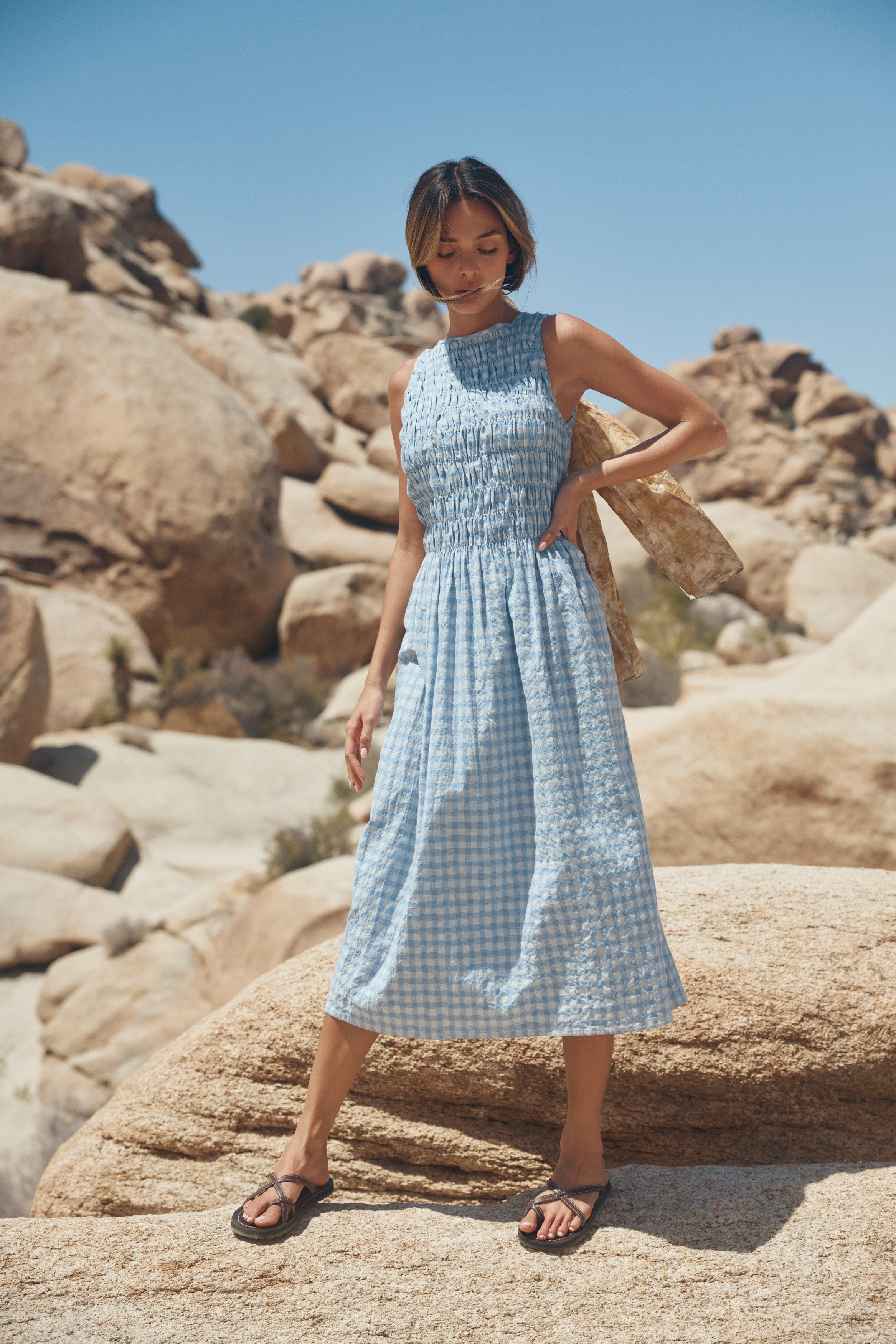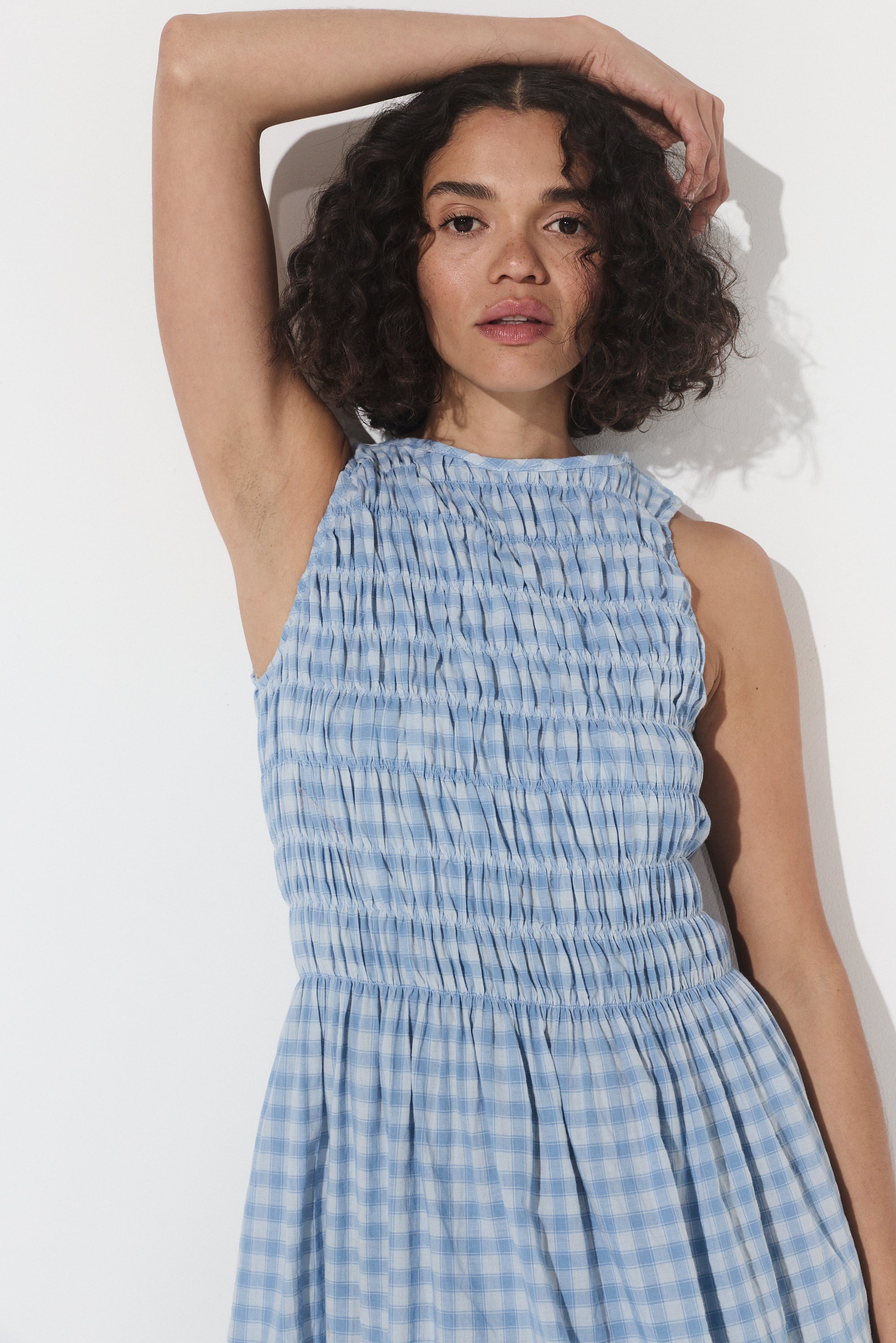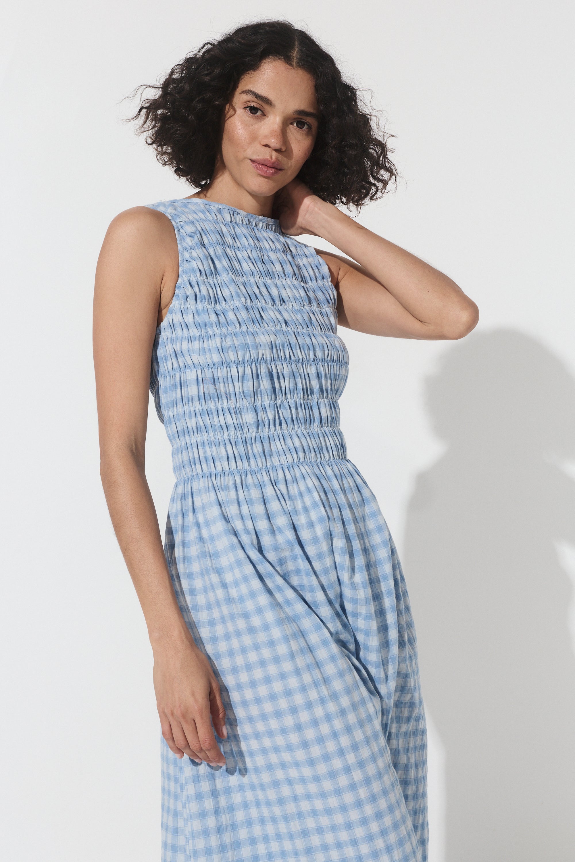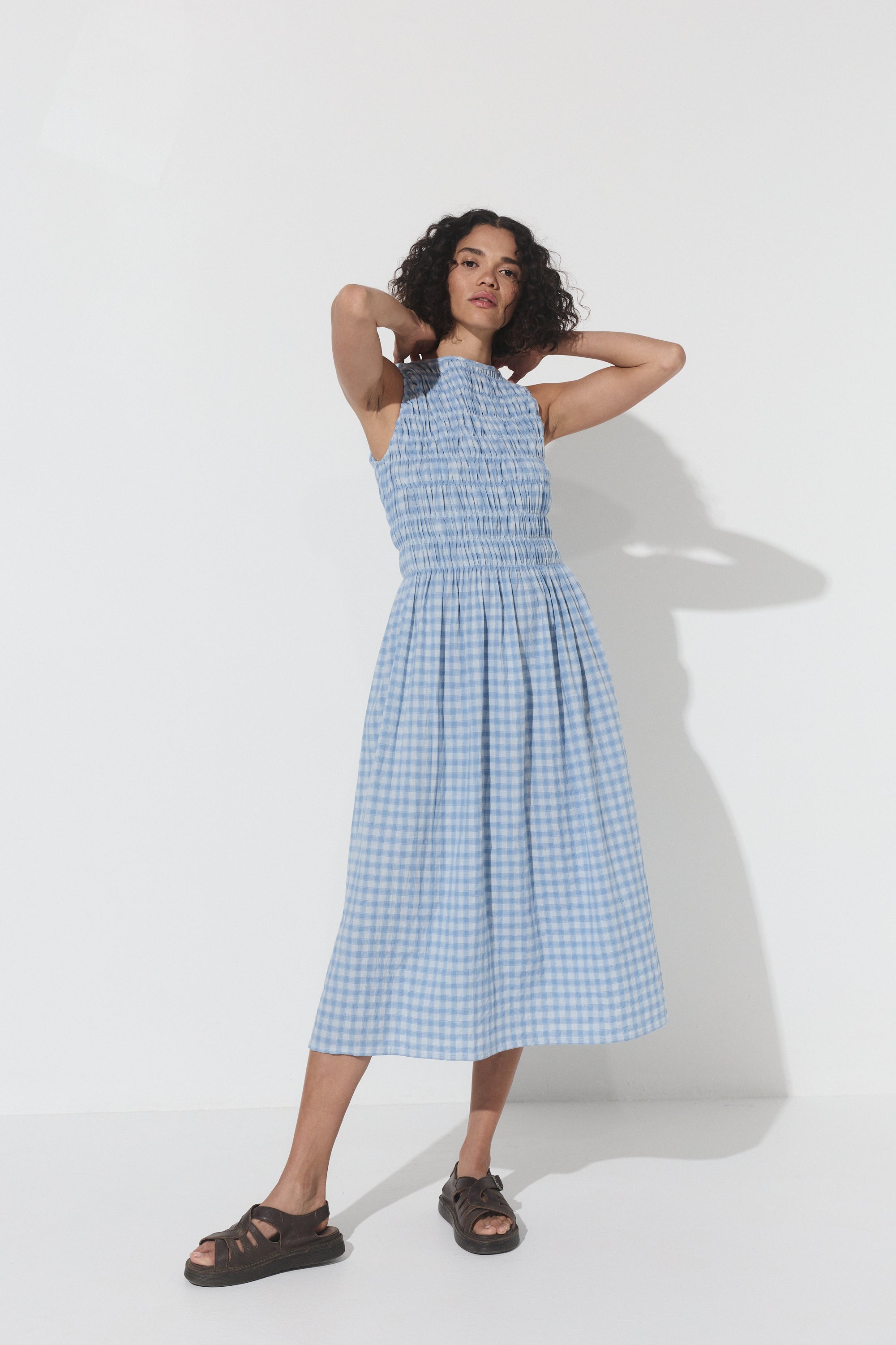 The Capucine Midi offers a flattering silhouette, featuring elastication from the shoulders to the waist line, providing ample room and comfort for all bust sizes. Falling with ease from the waist down, it flows effortlessly, creating a relaxed yet polished look. Thoughtfully designed with functional pockets, this dress is perfect for days when you want style and ease combined.