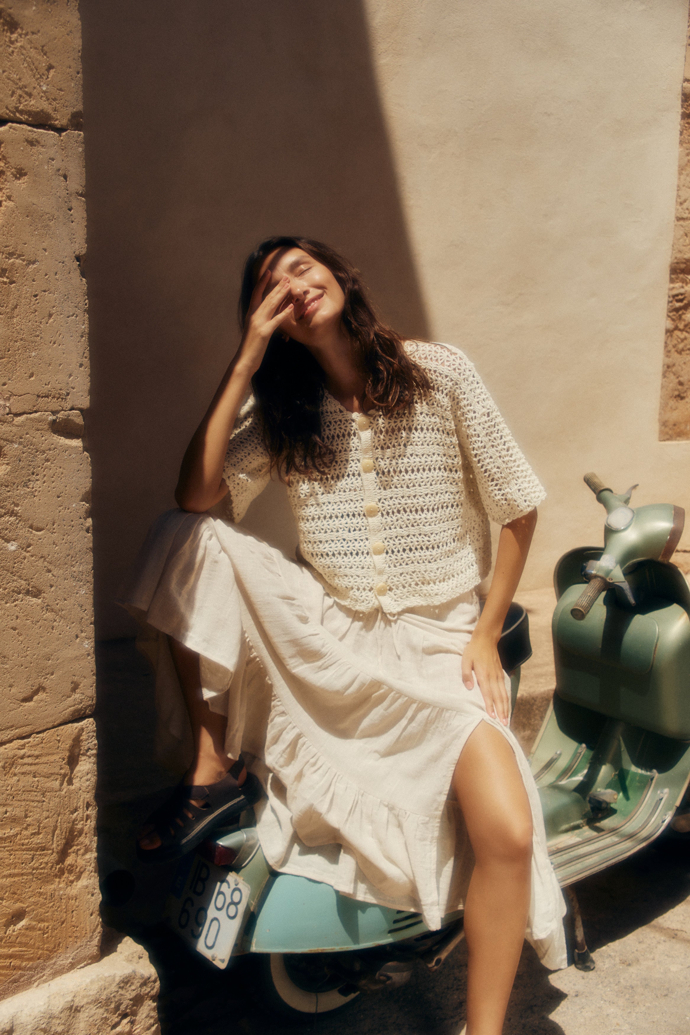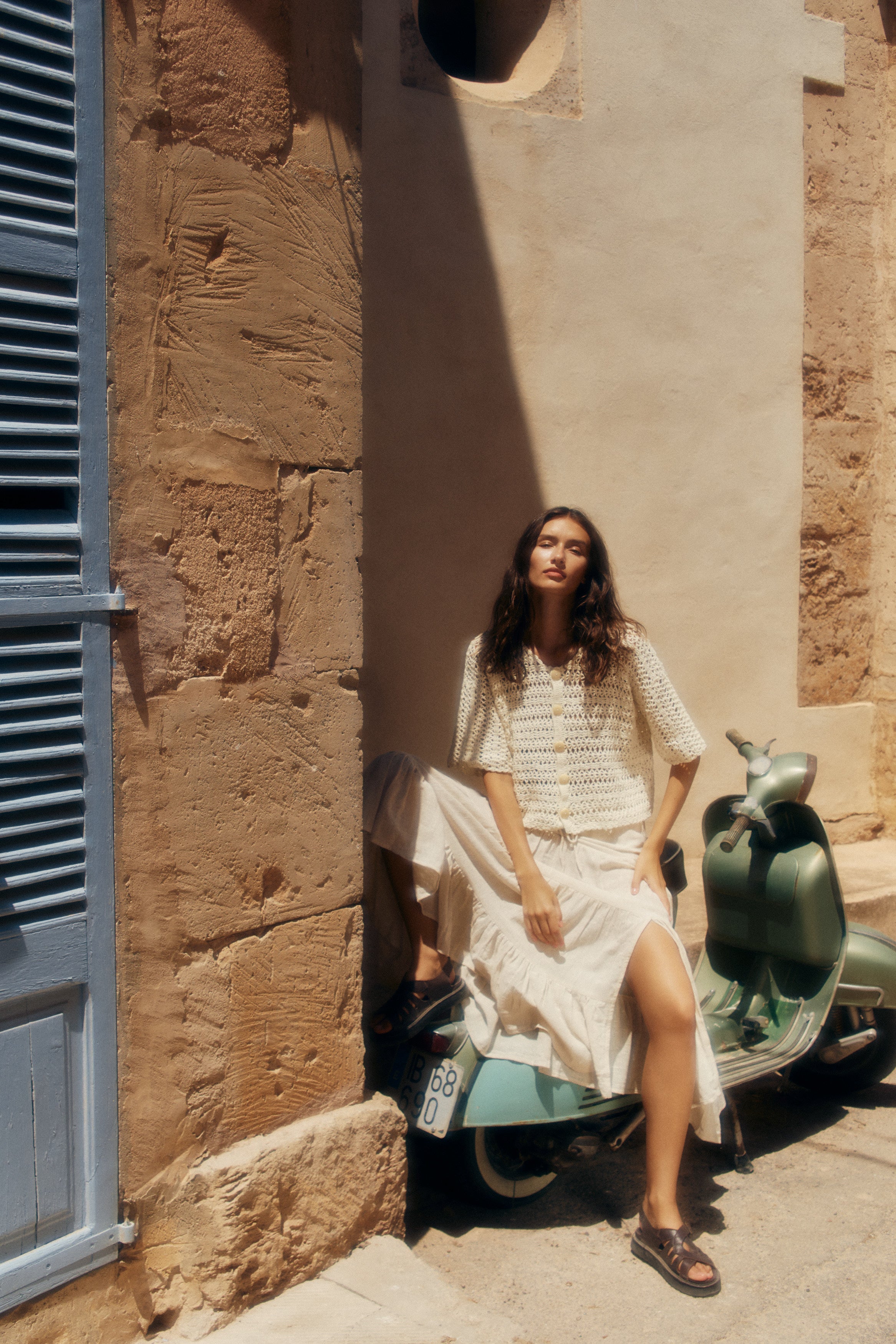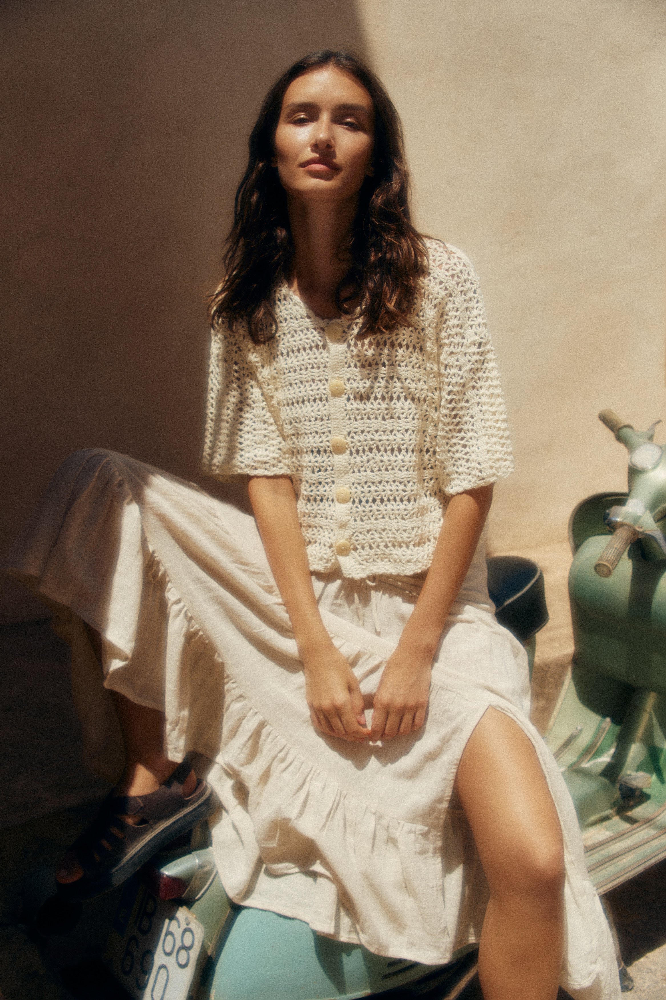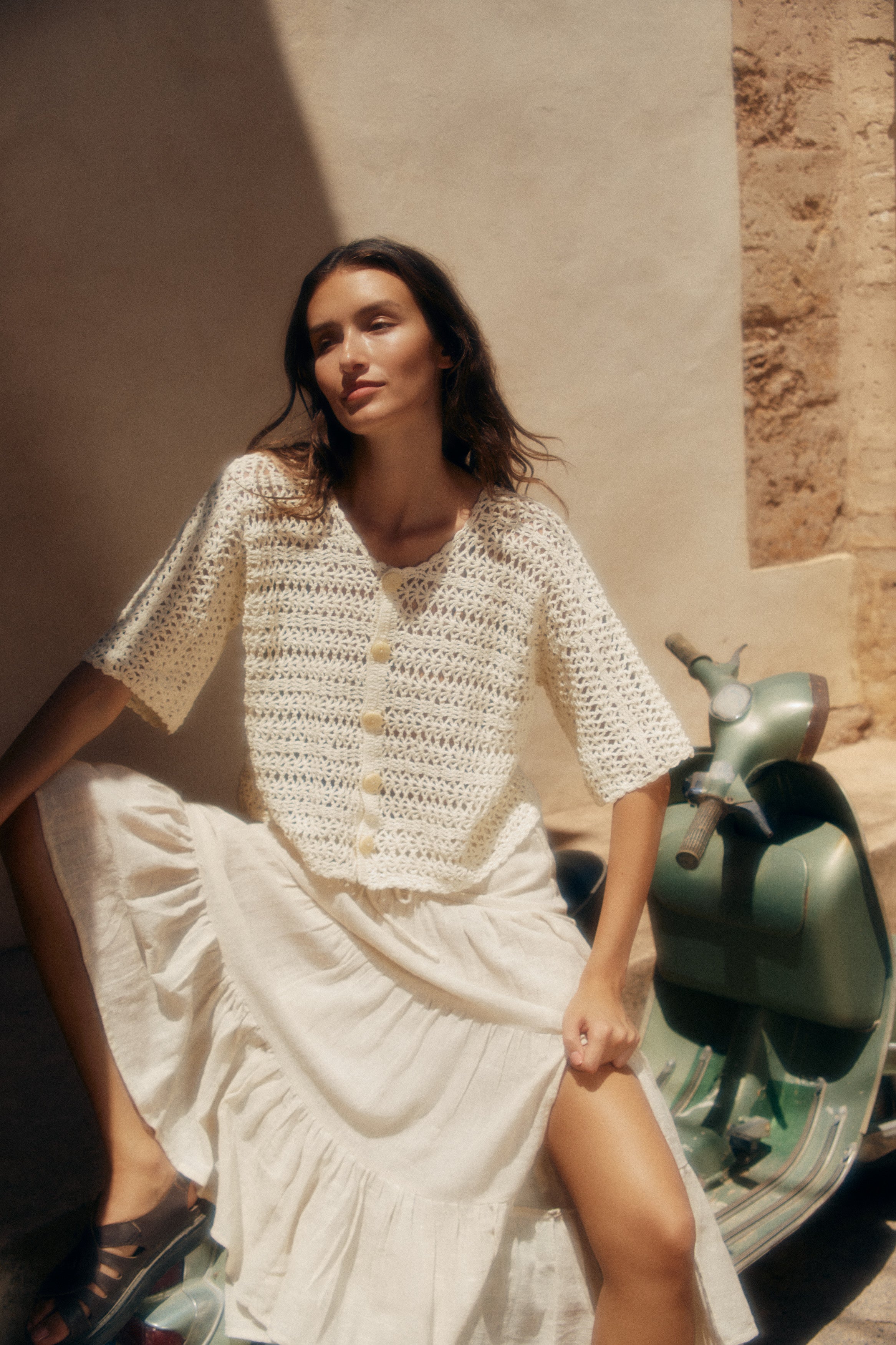 The Chloe Crochet Top is a beautifully intricate, lightweight summer crochet piece, designed to live in. Each piece is individually hand woven by our beautiful makers, taking two days to finish. Designed to be worn a little oversized, wear with your favourite demin, our style with our Bette Skirt.