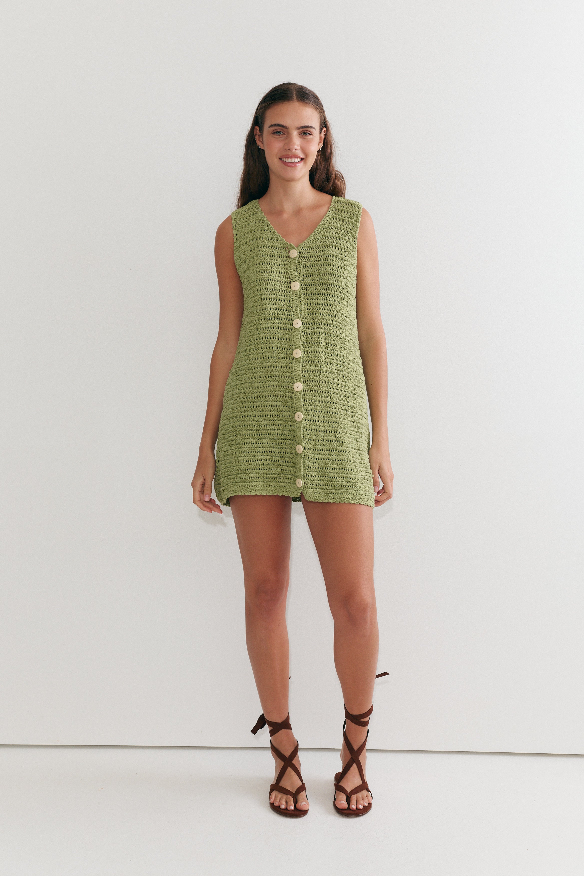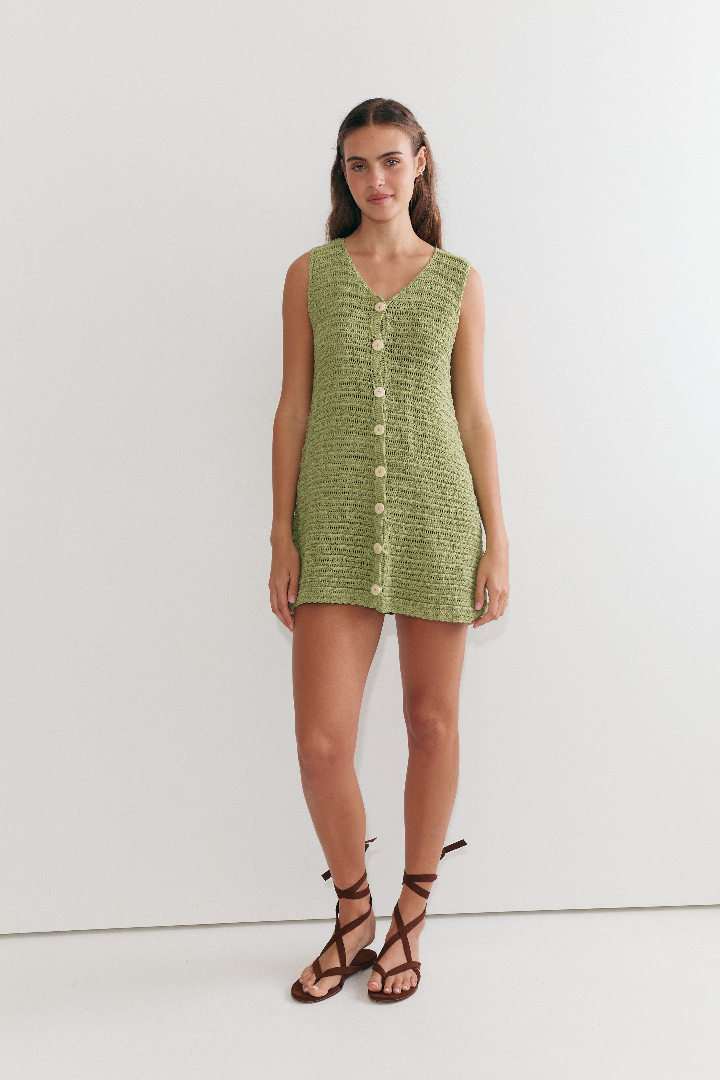 Veda Crochet Shift - Sage