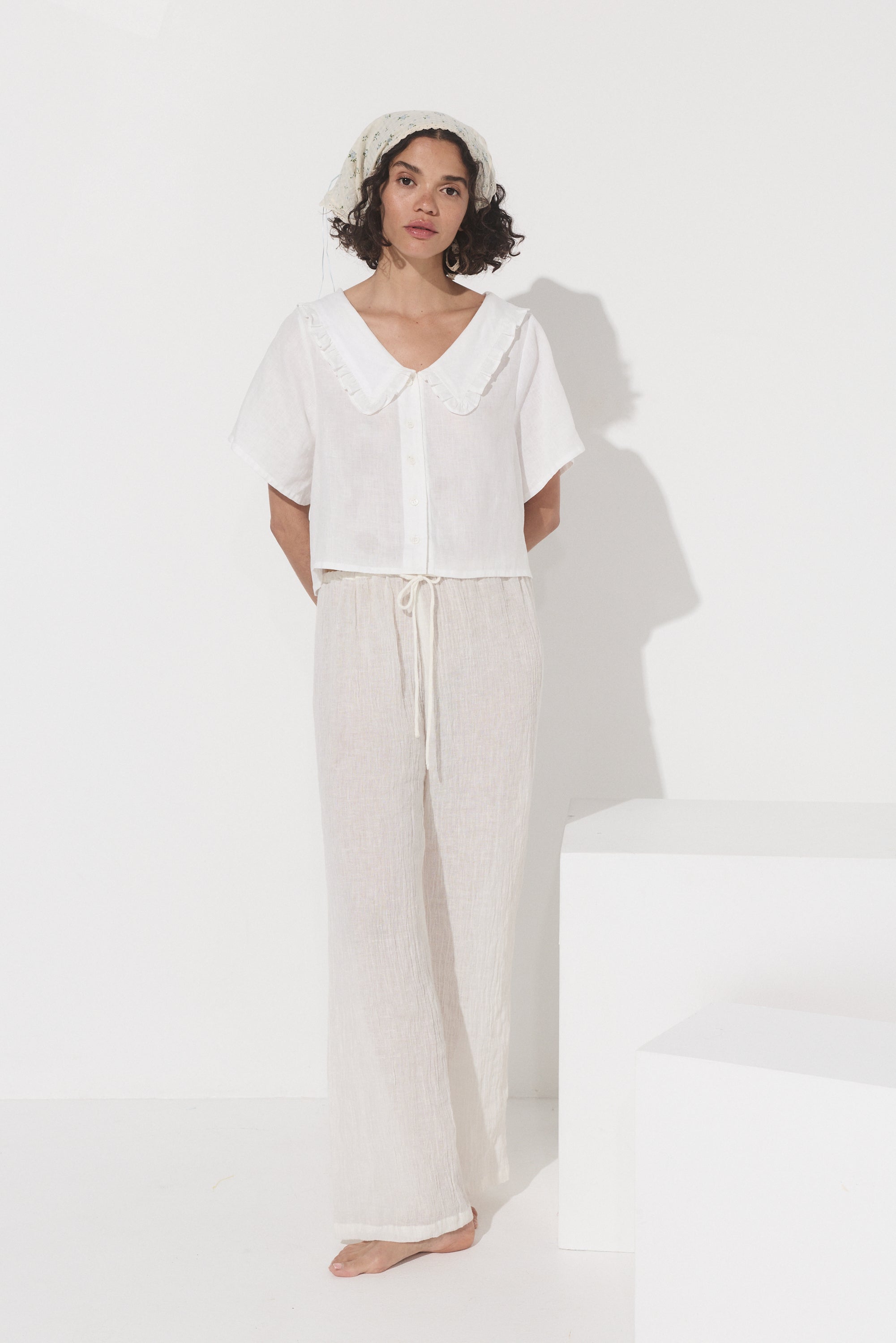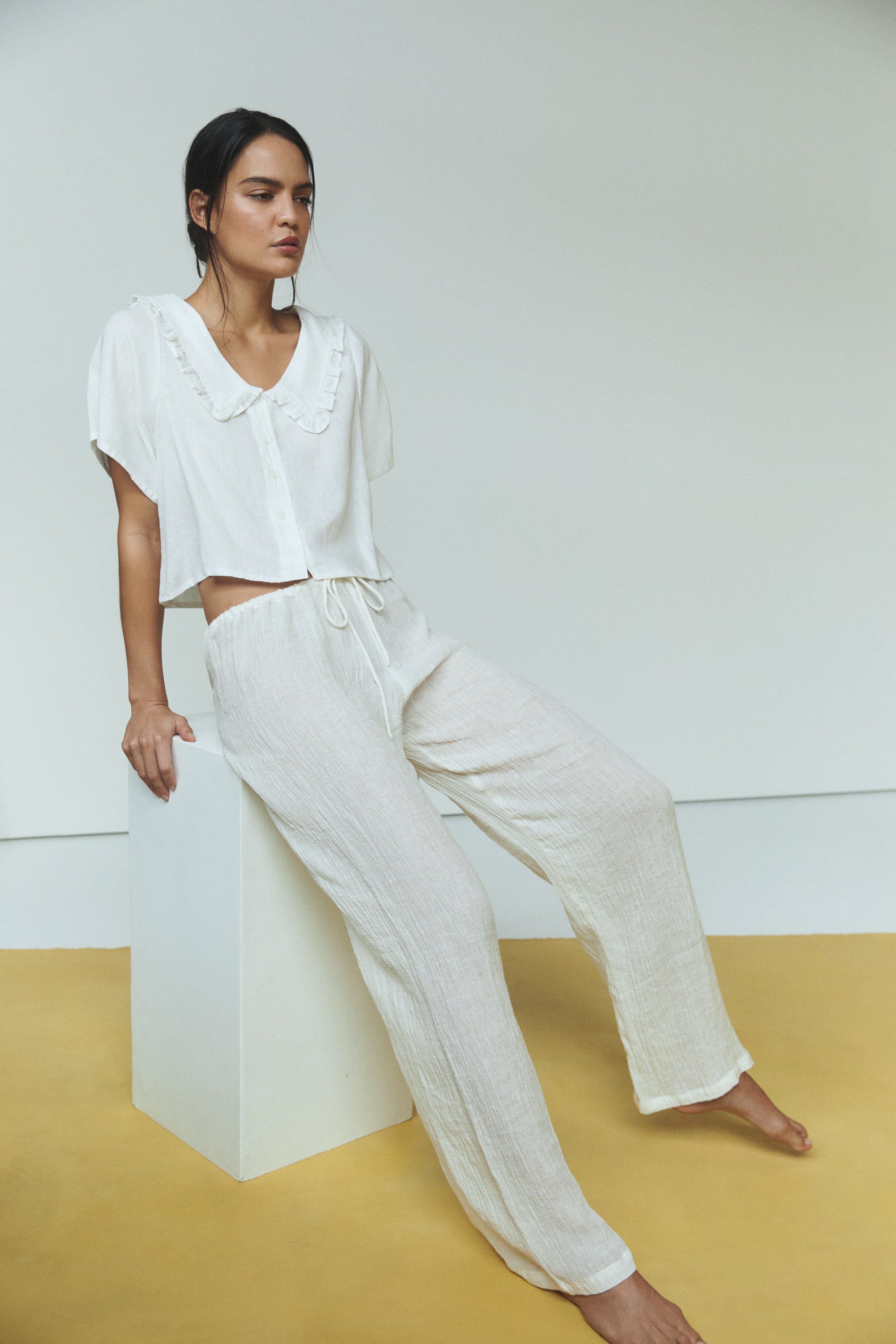 The Jeanne Blouse is a timeless and effortless piece that gently floats off the body, offering a relaxed, flattering fit. With its loose silhouette, this wardrobe staple transitions seamlessly through the seasons. Perfectly paired with your favorite denim, a statement skirt, or our Robin Crinkled Pants, it’s a versatile addition to any outfit. The Jeanne Blouse is the perfect transeasonal piece, offering effortless style and comfort that will carry you through every season with ease.